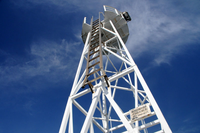 珍しい「やぐら形」の灯台。橋田鼻灯台より西方面、海岸どおりを向かい愛知県「こどもの国駅」より海方面に向かうと沖に見えます。