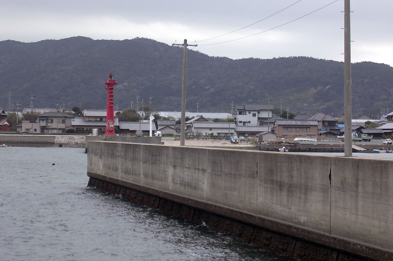 立馬崎よりR259に向かうとすぐにある福江港の赤灯台。防波堤を歩き根元まで到達できる。