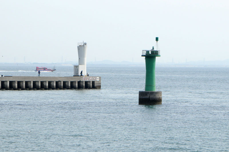 師崎港沖防波堤東灯台は師崎漁港へ入る船舶の左舷標識で緑光です。近くにある沖ノ島灯標も左舷標識なので少し紛らわしいが素人なのでよく分かりません。