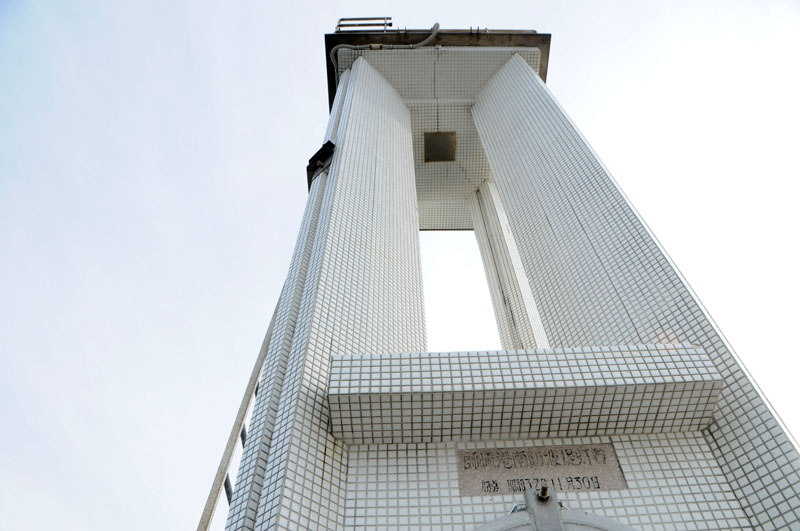 日間賀島や篠島へ渡るときに堤防先端を掠めるように通るので船からも撮影しました。左側の黄黒の灯標は羽島灯標です。