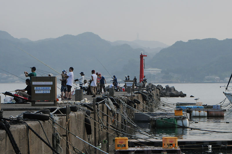 お盆休みの最終日は日曜日で堤防には多くの釣り人。親子連れは少なく殆どが大人(おじさん・あばさん)でした。