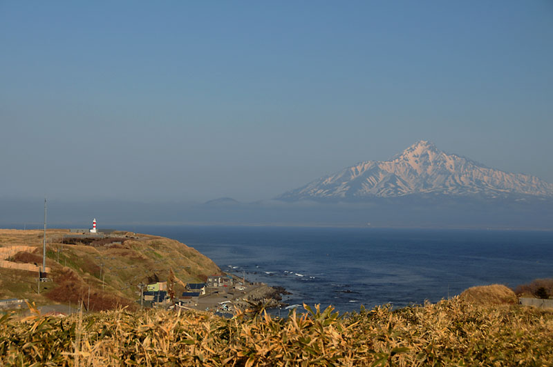 礼文島の南。知床の東側の会津ノ岬に建つ。灯台は結構目立つが入口が判り難い。灯台の入口は小学校の脇より未舗装路が続いている。