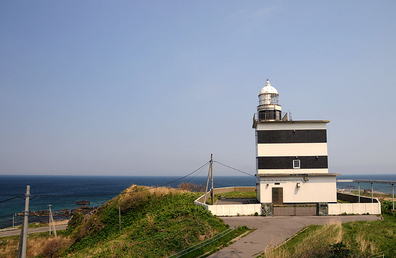 奥尻島北端に位置する、稲穂岬灯台。初点は明治と古い。現在の灯台は大きな四角形で存在感満点。あまり灯台らしくないといえば言えなくも無いが珍しい形です。黒帯の四角い灯台ははじめて見ました。