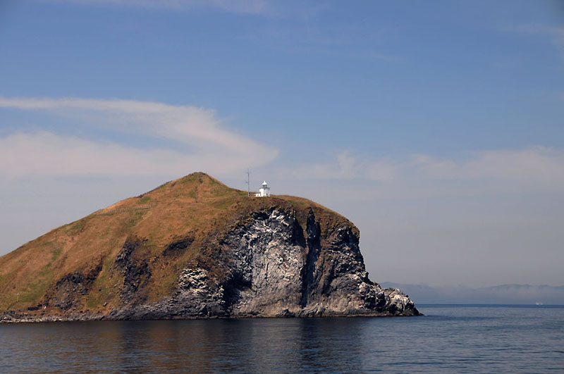 利尻島鴛泊港のペシ岬に建つ。港からも見える。灯台までは歩道が続いているがやや険しい。