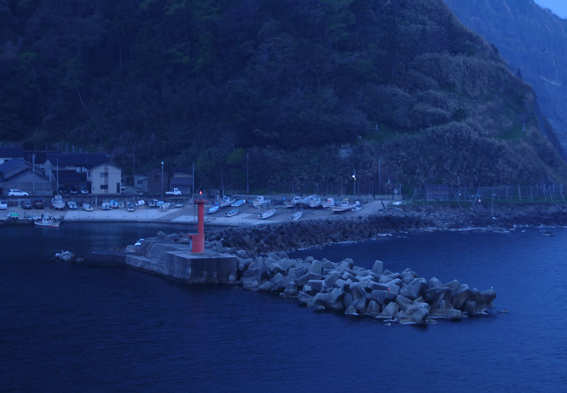 輪島より西へ10kmほどにある大沢港の防波堤灯台。この日最初の灯台到達でした。