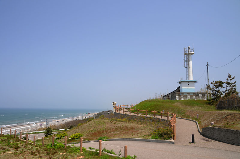 この灯台も下部は水色のタイルで色分けがされています。石川県で見た4基目です。