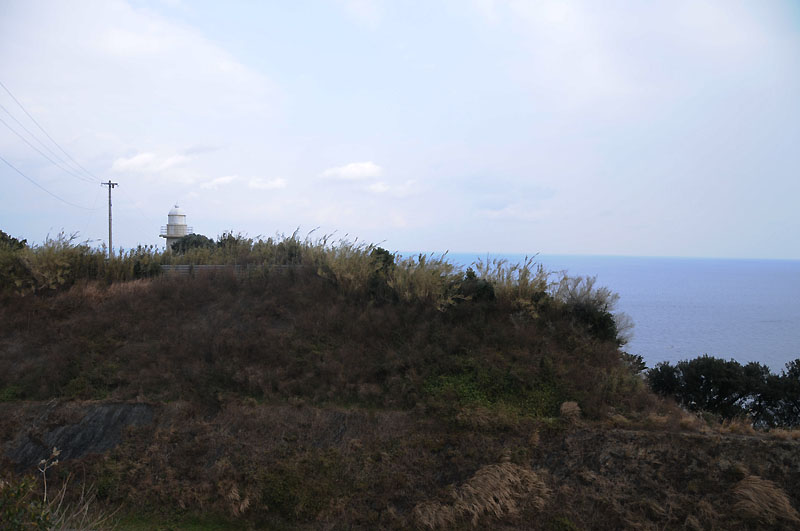 海沿いの県道27号を走っていくと岬付近に駐車スペースがあり灯台の頭も見えます。草むらの道を入り直ぐに灯台です。