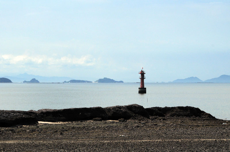 御船灯標は宇土半島の南側の海上にありR266からよく見えます。灯標は比較的陸から近くにあり浜に降りるとかなり近くに見えました。