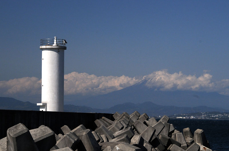 釣り人も多く居ましたが、海越しに見える富士は良かった。ちょっと山頂に雲が掛かっているのが残念。